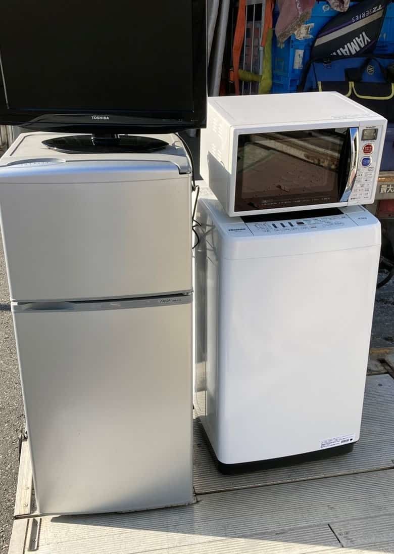 今回は石巻市中里地区にて単身用の冷蔵庫、洗濯機、テレビ、電子レンジの家電4点セットの不用品を回収しました。